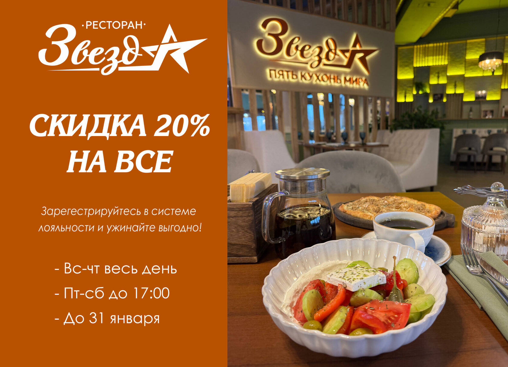 Только до конца января скидка 20% на всё в ресторане «Звезда»!