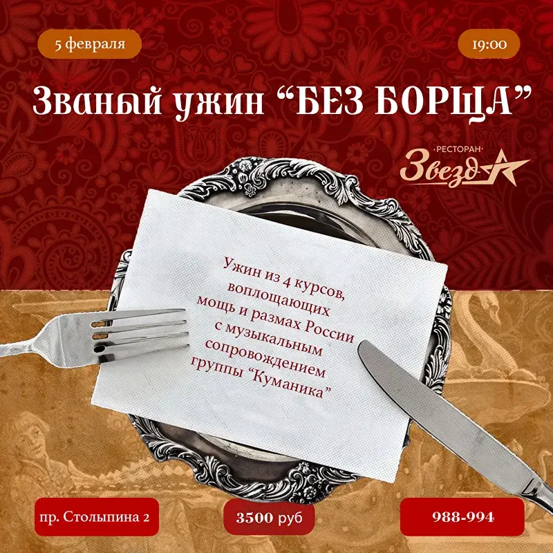 Ресторан «Звезда» готовит уникальное событие - званый ужин, который перевернет ваше представление о русской кухне.